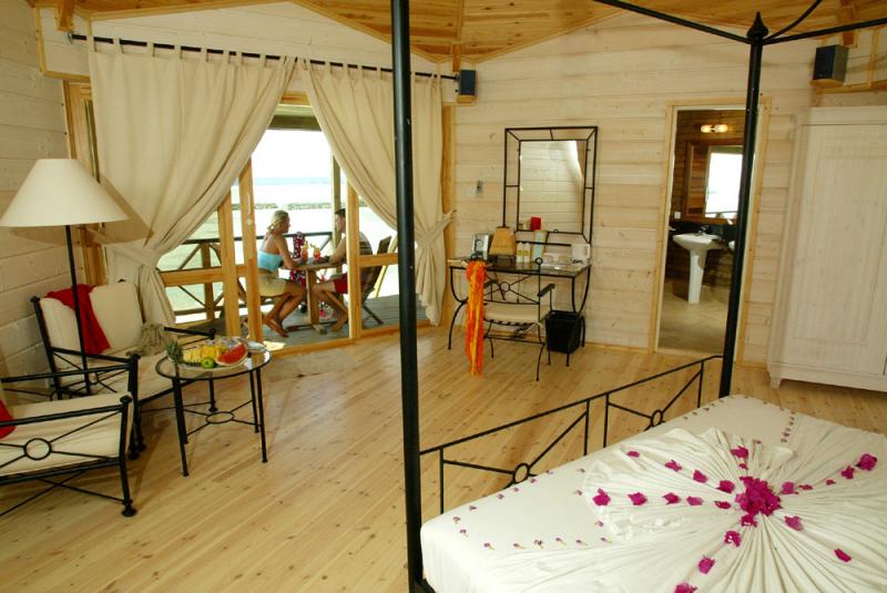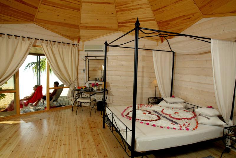 Beach Villa: расположена на пляже, в северо-восточной части острова; состоит из спальни, гостиной зоны, ванной комнаты полуоткрытой формы с душевой, террасы с прекрасным видом на океан. В вилле не размещаются дети до 12 лет.