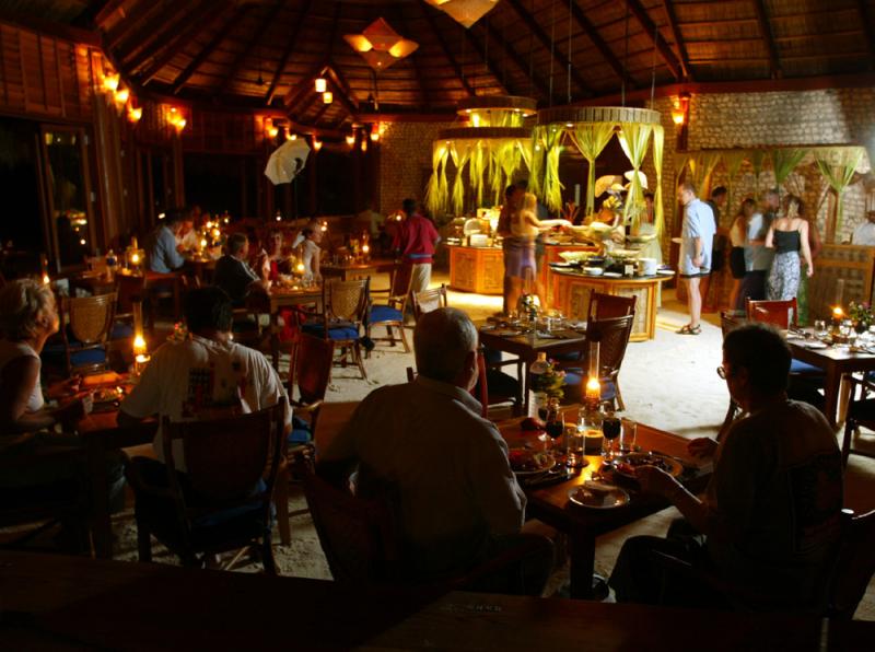 В главном ресторане Bonthi, расположенном в центре острова, предлагают меню местной и международной кухонь и устраивают тематические ужины.Ресторан Koamas сервирует шведский стол с местными и международными блюдами (открыт для гостей вилл южной части острова, включая, некоторые Beach Villa и виллы категории Jacuzzi Beach Villa).