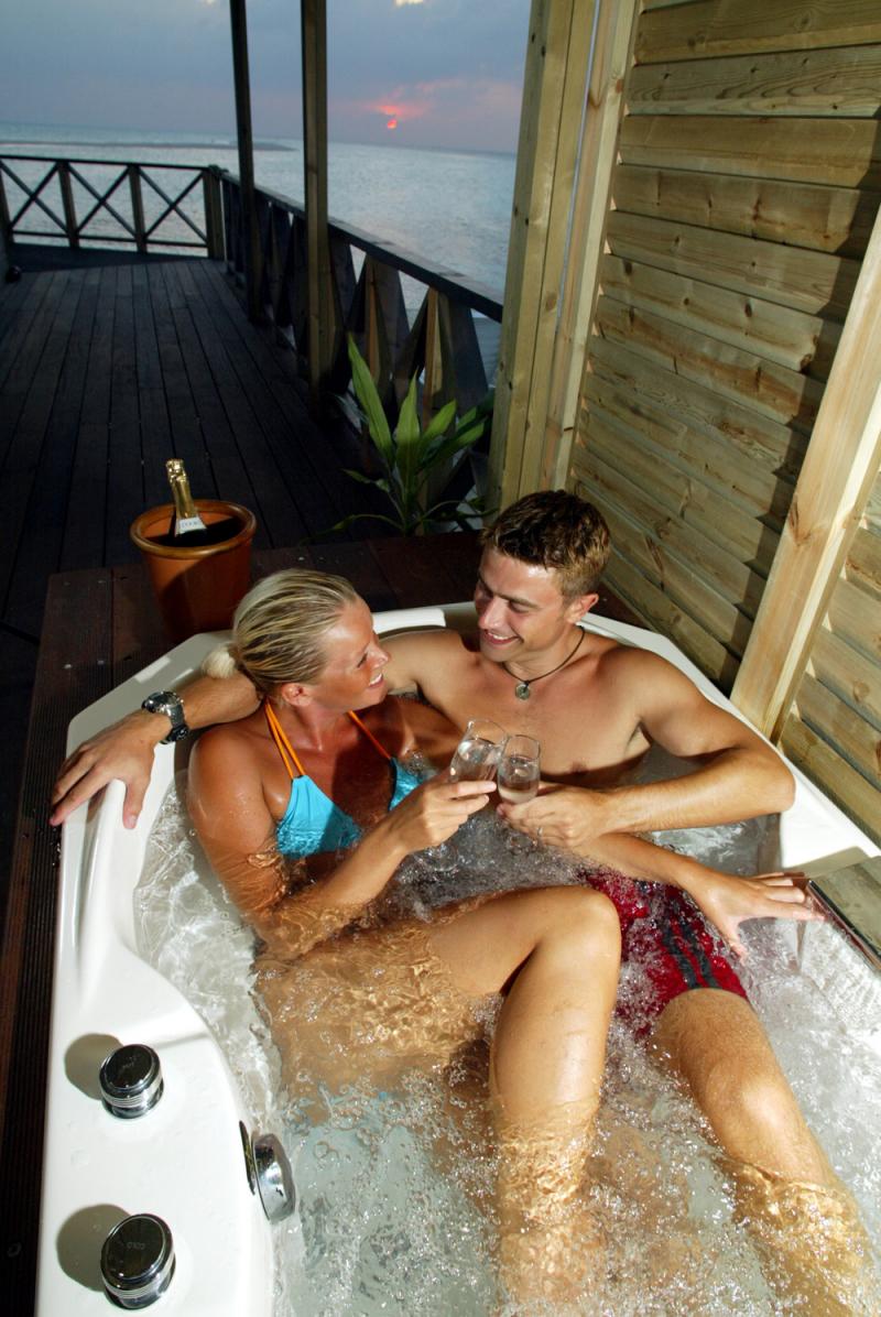 Jacuzzi Beach Villa: расположена на пляже, в южной части острова; имеет просторный частный сад, состоит из спальни, гостиной зоны, ванной комнаты полуоткрытой формы с душевой, веранды с джакузи и видом на океан.