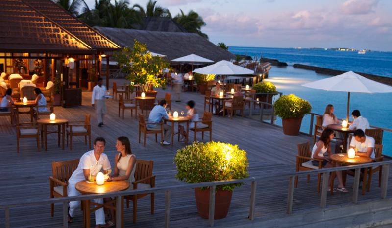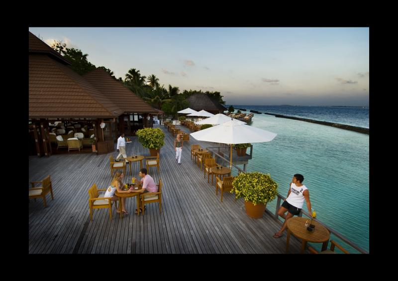 Меню Kurumba Café предлагается также за столиками у бассейна и у бассейна на пляже Raha, где Вы можете поесть в тени пальмы, любуясь океаном.