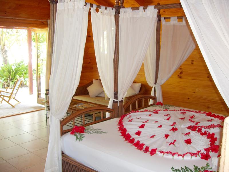 Honeymoon Suite: 90 м2, расположен на сваях в воде в середине лагуны и доступны с берега только на легкой лодке; Состоят из спальни, гостиной со столовой зоной, кухни, ванной комнаты, открытой террасы, имеется спуск в воду и причал для лодки.