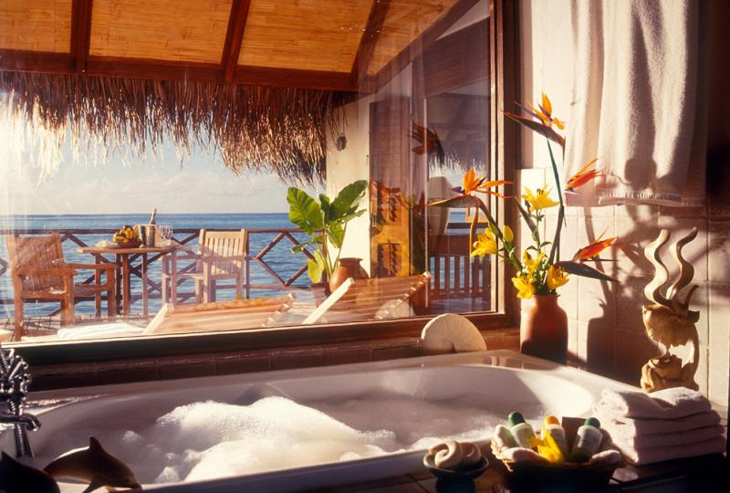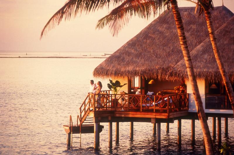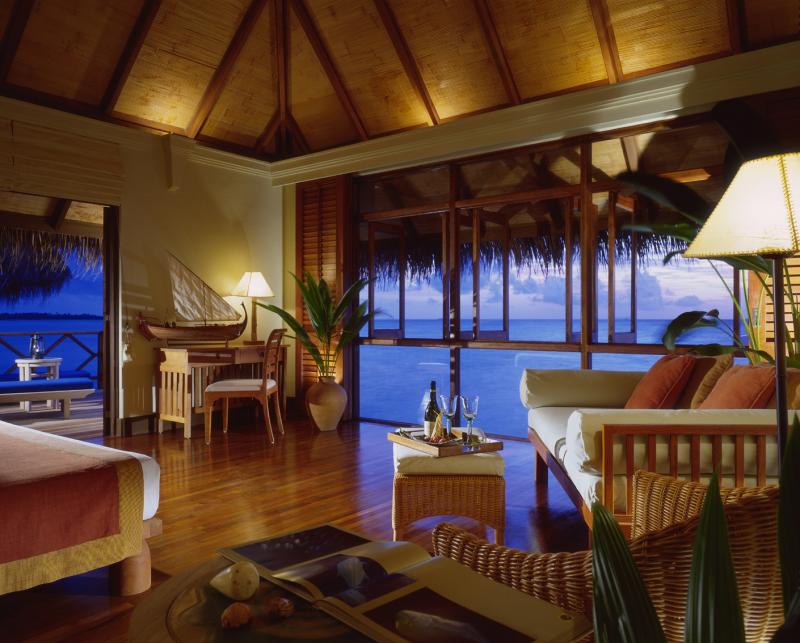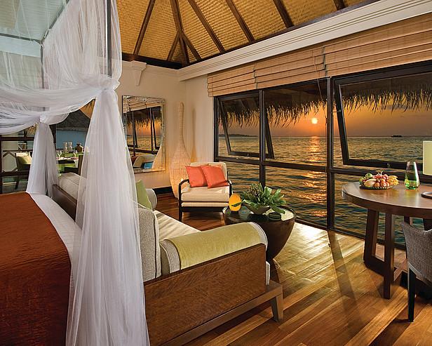 Sunset Water Bungalow: номер такой же, как Sunrise Water Bungalow, но расположен с западной стороны, с видом на закат.