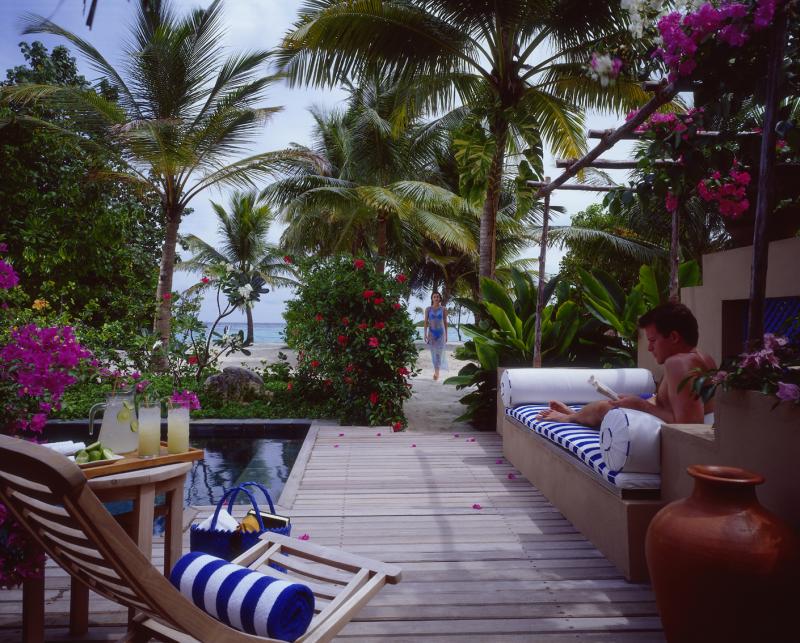 Beach Pavilion with Pool: 45 м2. Расположен на берегу, состоит из спальни, ванной комнаты, террасы с садом, бассейном, душем на открытом воздухе и павильоном для отдыха. Максимальное размещение - 2 взрослых + 1 ребенок (до 12 лет) + 1 ребенок (до 4 лет) или 3 взрослых.