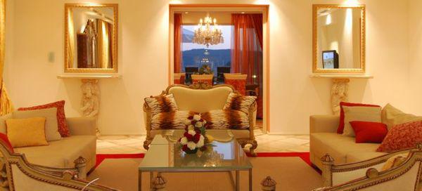 Presidential Suite: 385 м2. Шикарный номер с эксклюзивным интерьером, выполненном по проекту известного итальянского дизайнера Роберто Демиани. Номер расположен на самом верхнем уровне отеля, по аналогии с орлиным гнездом на вершине утеса, и располагает просторной террасой с собственным бассейном, откуда открывается захватывающий вид на безбрежную гладь моря.