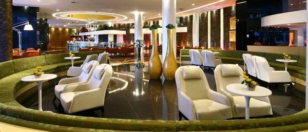 Просторный и стильный лобби-бар представляет большой выбор напитков и легких закусок.