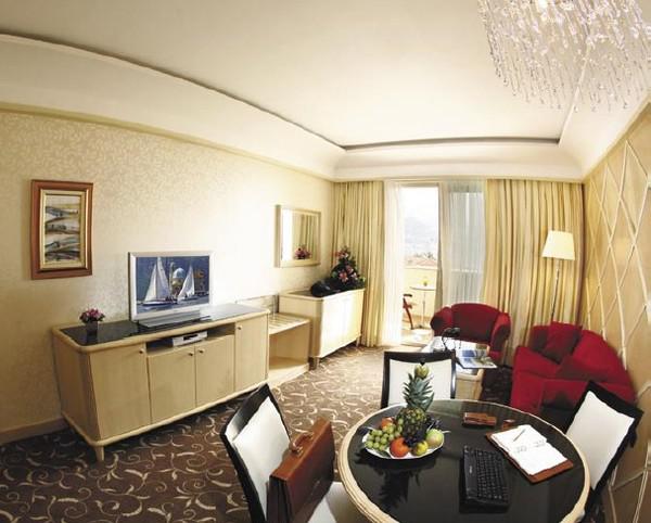 Wellness Suite: 84 м2. Номера, относящиеся к СПА центру, оборудованы специальными условиями для СПА услуг, например, хаммамом, джакузи, ванной Клеопатры, массажными креслами и т.д. Из номеров открывается чудесный вид на море и залив Бечичи.