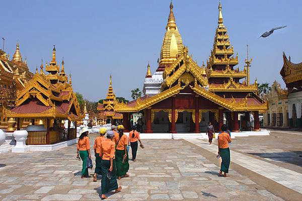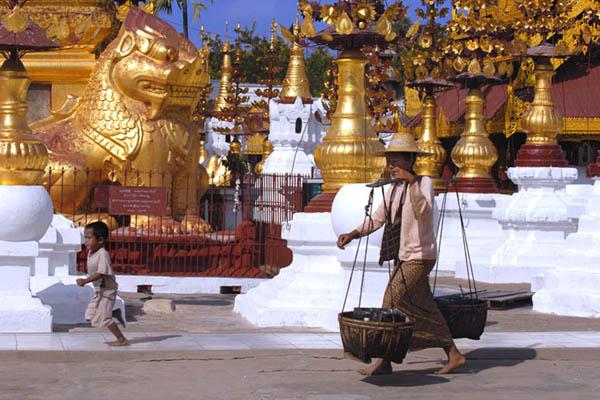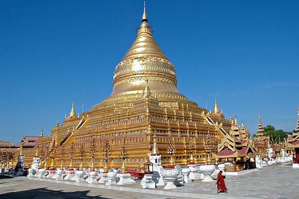 Храм Shwezigon – построен в 1076 г. и является одной из основных достопримечательностей Мьянмы. «Золотая пагода» словно выткана из кружевных узоров.