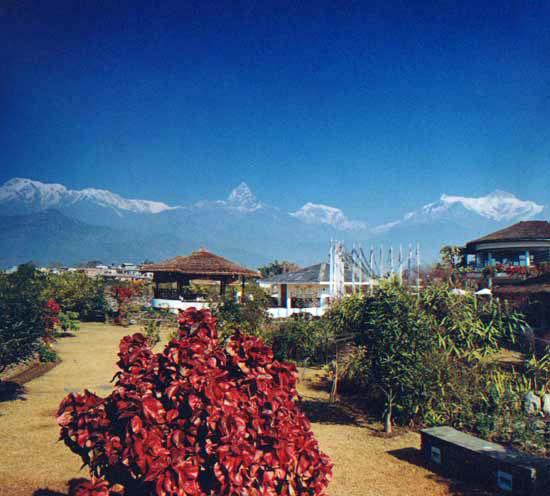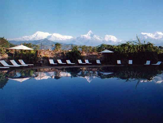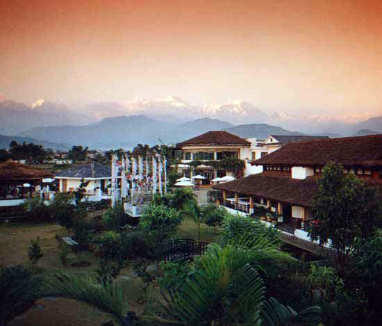 Shangri~La Village Resort расположен в уединенном и восхитительном месте, среди зеленой долины с узкими каньонами и быстрыми реками, в трех километрах от живописного озера Phewa, в окружении величественных Гималаев. В отеле всего 65 номеров, расположенных в небольших зданиях, выполненных в этническом стиле, в просторных номерах – элегантные интерьеры, отражающие непальские мотивы: деревянные полы и потолки, отделанные деревянными балками, изящная мебель, ковры и покрывала с национальным орнаментом, оригинальные украшения, террасы с великолепным видом на долину и горные массивы. На территории отеля находятся открытый бассейн, Оздоровительный центр с сауной и массажными кабинетами, предлагается рафтинг, параглайдинг. В элегантном ресторане Caravanserai предлагается разнообразие блюд интернациональной кухни.