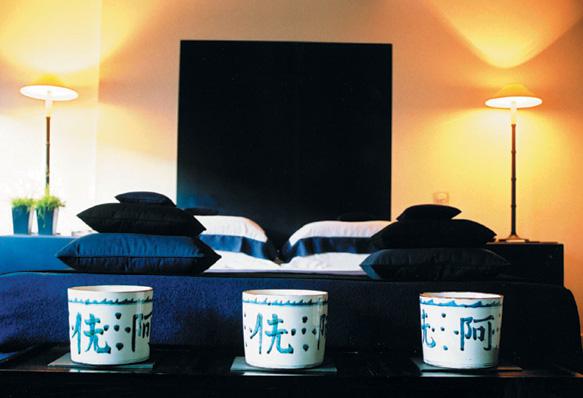 Duplex room (32 кв.м.) — вид на внутренний двор; номер выдержан в черных, темно-синих или зелено-бежевых тонах; расположен на двух этажах, соединенных винтовой лестницей; состоит из спальни с кроватью с пологом на одном этаже и ванной комнаты с ванной с душем на другом.