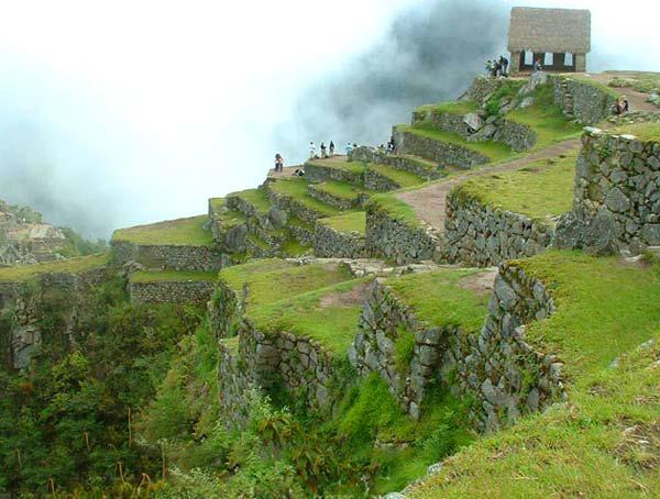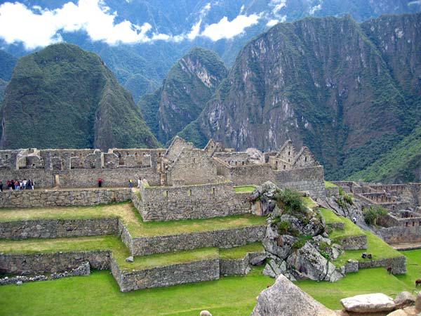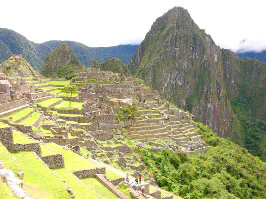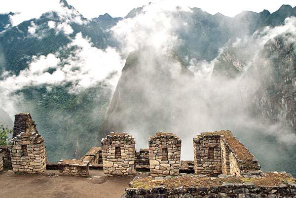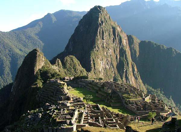 Мачу-Пикчу называют «затерянным городом инков», куда ушли самые просвещенные жрецы после падения инкской империи, и который испанцы так и не смогли найти. Множество предположений и гипотез существует об этом месте, но так достоверно и неизвестно, когда возник этот город и кем он был основан. Мачу с кечуа значит «старый», пикчу – «гора». Мачу-Пикчу – это целый комплекс археологических групп, число которых в настоящее время достигает 24 (и постоянно увеличивается в результате новых исследований), которые разбросаны на площади около 33 тысяч гектаров. На Старой горе и находится главная часть исторического памятника, занимающего семь квадратных километров. Уайна-Пикчу – Молодая гора - служила сторожевой башней. Часовые, дежурившие там, могли обозревать местность на десятки километров вокруг и вовремя предупреждать о появлении противника. Мачу Пикчу нашел американский исследователь Хайрем Бингхем. После тщательного изучения каменной кладки и многочисленных построек религиозного назначения, они пришли к выводу, что это был священный горный приют великого правителя инков Пачакути, построенный примерно за сто лет до испанского вторжения. Мачу-Пикчу нельзя назвать крупным городом. Около 200 сооружений сложены из хорошо обработанного камня и плотно пригнанных друг к другу плит. По оценкам археологов, здесь жило примерно 1200 человек, поклонявшихся богу Солнца — Инги. По какой-то, до сих пор невыясненной причине, все они исчезли еще до вторжения испанцев. Из-за недостатка места дома, храмы и дворцы пришлось строить вплотную друг у другу. Кварталы города и отдельные здания соединены между собой главным образом лестницами, которые выполняют роль улиц. Первое, что здесь поражает, - необыкновенная красота горного пейзажа. И только потом видно террасы совершенных пропорций и симметрии, Священную площадь, руины и храма Солнца и храма Трех окон, развалины различных сооружений, лестницы, которых здесь больше сотни, акведуки, пробитые в камнях. Особый интерес посетителей вызывает Камень Солнца – «Интиуатана», который, как предполагают, играл роль астрономической обсерватории. Существует такая гипотеза, что «Интиуатана» служила солнечными часами; торчащие выступы камня в разное время дня отбрасывали тени различной длины и по ним вели отсчет времени. С помощью «Интиуатаны» они определяли не только время суток, но и время года, от чего зависели сезонные сельскохозяйственные работы, военные походы(?) и т.д. Секрет солнечных часов все еще не разгадан.
