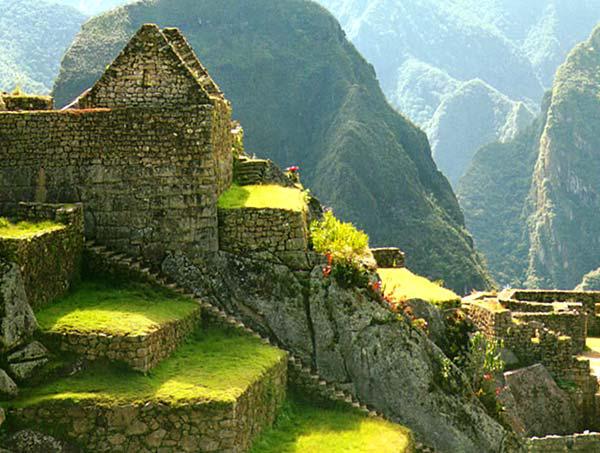 Первое, что здесь поражает, - необыкновенная красота горного пейзажа. И только потом видно террасы совершенных пропорций и симметрии, Священную площадь, руины и храма Солнца и храма Трех окон, развалины различных сооружений, лестницы, которых здесь больше сотни, акведуки, пробитые в камнях.