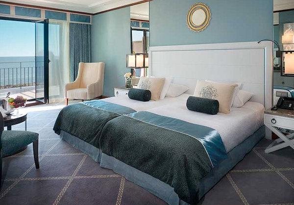Executive Double Sea View: 40-46 м2. Выполнен в серо-голубых тонах, состоит из спальни с зоной отдыха, ванной комнаты, отделанной венецианской мозаичной плиткой — в некоторых номерах с ванной и отдельным душем, выходит на море.