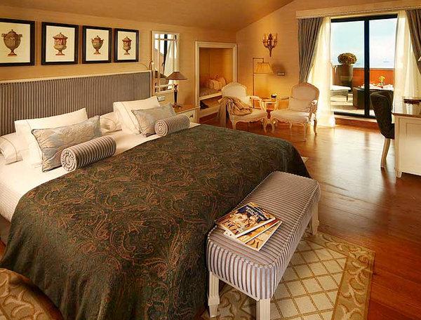 Suite Executive Sea View: 69 м2. Расположен в главном здании, выполнен в бордовых тонах и обставлен мебелью из красного дерева, на полах — ковровое покрытие, состоит из спальни, гостиной зоны, ванной комнаты, отделанной венецианской мозаичной плиткой — в некоторых номерах с ванной и отдельным душем, просторного балкона с видом на море.