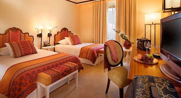 Executive Single Land View: 40-46 м2. Одноместный номер, выполнен в бежево-золотистых тонах, состоит из спальни с зоной отдыха, ванной комнаты, отделанной венецианской мозаичной плиткой — в некоторых номерах с ванной и отдельным душем, выходит на ландшафты курорта.