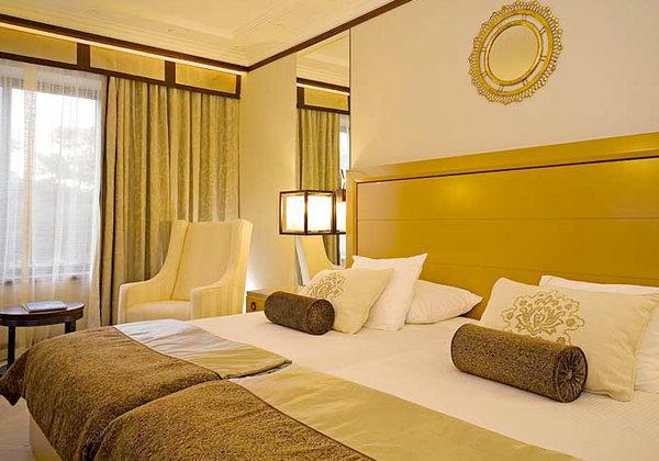 Standard Double Sea View: 36-38 м2. Выполнен в серо-голубых тонах, состоит из спальни, ванной комнаты, отделанной венецианской мозаичной плиткой — в некоторых номерах с ванной и отдельным душем, выходит на море.