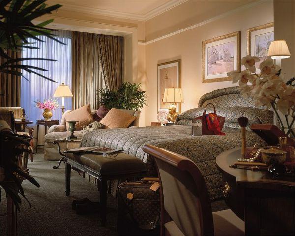 Всего в отеле 254 номера различных категорий, включая 23 Superior Room, 165 Deluxe Room, 24 Premier Room, 27 Four Seasons Executive Suite, 9 Standard One-Bedroom Suite, 1 Governor One-Bedroom Suite, 1 Ambassador One-Bedroom Suite, 1 Royal One-Bedroom Suite и 1 Presidential Suite. Интерьеры украшены предметами искусства в восточном стиле и тканями бежевых, черных, зеленых и розовых тонов.