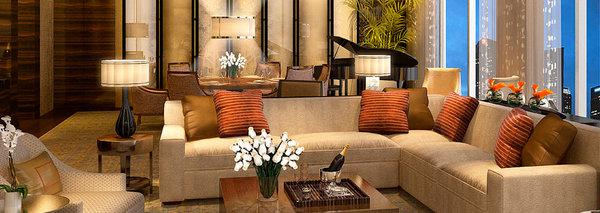 Sands Suite: 222 м2. Состоит из спальни с кроватью king-size, гостиной, просторной ванной комнаты. Гостям номера предоставляются услуги и привилегии The Club at Marina Bay Sands.