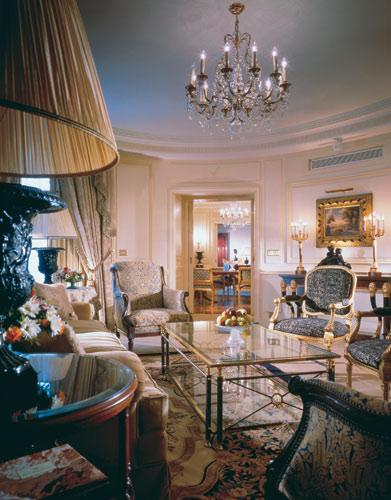 Royal Suite. Номер расположен на верхнем этаже здания; состоит из двух спален с отдельными гардеробными, гостиной, столовой с обеденным столом на 8 персон, библиотеки и двумя ванными комнатами (одна из которых — с джакузи и сауной). Номер обставлен мебелью из резного дерева, украшен живописными полотнами, бронзовыми лампами и шкафами, наполненными книгами в кожаных и позолоченных переплетах. Особый шарм номеру придает мраморный камин со старинными позолоченными часами.