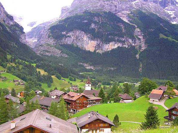 Нередко Гриндельвальд называют «Деревня Ледников», такое название городок получил из-за ледников, спускающихся в долину. Главные вершины Гриндельвальда: Юнгфрау (4158 метров), Шрекхорн (4078 метра), Мюнх (4099 метров), Айгер (3970 метров) и Веттерхорн (3701 метра). Именно эти великаны создают неповторимый ландшафт местечка Гриндельвальд.