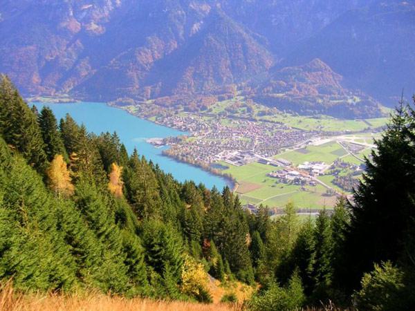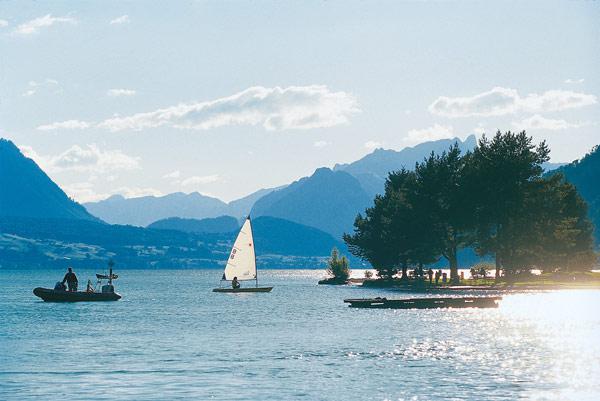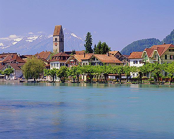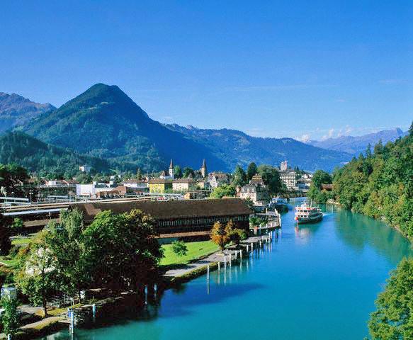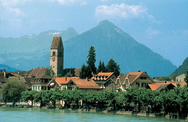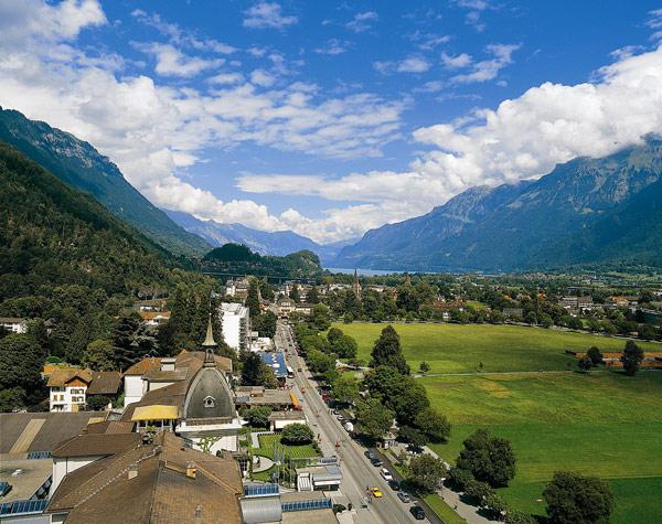 Интерлакен, один из наиболее посещаемых и популярных горных курортов Швейцарии, расположен между озерами Бринцерзее и Тунерзее, у подножия горы Юнгфрау. Курортный сезон здесь практически не прерывается круглый год. Летом — все мыслимые виды водных развлечений, прогулки по окрестностям пешком или на горном велосипеде, посещение пещер, подземного озера Сент-Леонар или ущелья Триммельбах с 70 водопадами, экскурсии в средневековые замки Штокальп, Вале и Турбильон или в замечательные музеи: Пьера Джанадда в Мартиньи, виноградарства в Сьере и др. Зимой — 183 км первоклассных трасс на высотах 576–3454 м, обслуживаемых 49 подъемниками, посещение "Ледового дворца" в 30-метровой толще льда и обед в панорамном ресторане "Пиц Глория" на вершине Шильторн (2970 м), в котором снимался один из фильмов о Джеймсе Бонде, или поездка на самой длинной в стране (19 км) горной железной дороге на зубчатой передаче на Юнгфрауйох (3454 м). Окрестные деревушки Венген (1274 м) и "свободный от автомобилей" Мюррен (1650 м), в котором проводятся ежегодные экстремальные игры для спортсменов-любителей "Инферно", давно уже превратились в самостоятельные фешенебельные курорты.