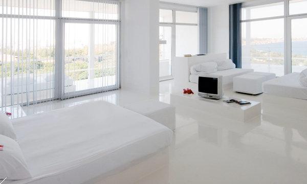 Suite A Sea View: 46 м2, состоит из спальни с кроватью king size, просторной гостиной зоны, ванной комнаты, балкона с видом на море.