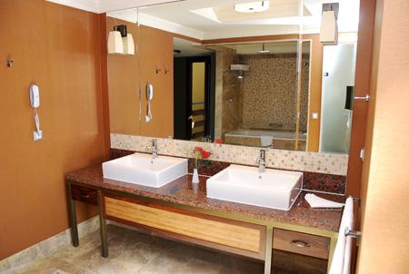 Sultan Suite and Villas with Exclusive Treatment: шикарная двухуровневая вилла с видом на море, гольф-поле и сады; включает: на 1 этаже – гостиная и обеденная зона, бассейн с детской секцией, спальня с односпальной кроватью и ванной комнатой с душем, на 2 этаже – 2 спальни, одна – с балконом и ванной комнатой с джакузи и душем, другая – с ванной комнатой с душем и сауной. Гостям виллы предлагаются услуги батлера.