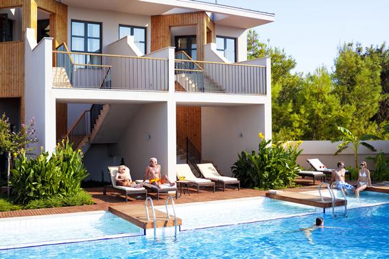 Double Large Room: 38 – 45 м2. Состоит из спальни с двуспальной кроватью или двумя кроватями twin и зоной отдыха с диваном, ванной комнаты, террасы или балкона с боковым видом на море, некоторые номера имеют выход к бассейну. Максимальное размещение – 2 взрослых+1 ребенок или 3 взрослых.
