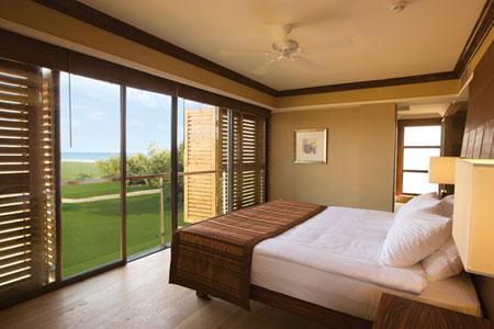 Sultan Suite and Villas with Sea View and Exclusive Treatment: 190-200 м2. Шикарная вилла, состоит из гостиной с обеденной зоной, 2 спален (одна – с двуспальной кроватью, балконом и ванной комнатой с джакузи и душем, другая – с двумя кроватями twin, балконом и ванной комнатой с душем), крытого бассейна, террасы с видом на море, гольф-поле и сады. Максимальное размещение – 4-5 человек. Гостям виллы предлагаются услуги батлера.