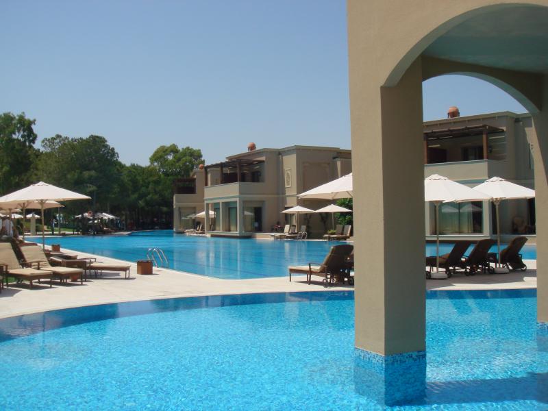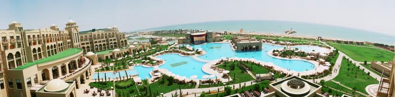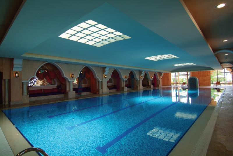 На огромной территории среди голубых лагун бассейнов, с небольшими островками и декоративными мостиками, тропического парка с разбегающимися тропинками и изумрудными лужайками гостям предлагаются 5 ресторанов и 4 бара, ночной клуб, детский клуб, открытый бассейн площадью 5 тысяч кв. м, аквапарк с 8 водными горками, бассейн для гостей вилл, 2 детских бассейна, крытый бассейн с подогревом, тренажерный зал, 4 теннисных корта, площадки для волейбола, баскетбола, мини-футбола, а также спа-центр Spa-Ice Health Club, включающий 2 сауны, парную, гидромассажные душевые, 16 массажных кабинетов, турецкую баню и зону отдыха.