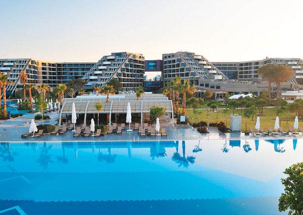 Susesi Resort Spa Hotel Белек — грандиозный комплекс, раскинувшийся на обширной живописной территории, у просторного белоснежного пляжа и лазурного Средиземного моря. В отеле созданы все условия для яркого и незабываемого отдыха. Великолепные номера и сьюты размещаются в главном здании и в зданиях с выходом к бассейнам, а для любителей уединенного отдыха имеются шикарные VIP виллы. Прекрасно оборудованный СПА центр, название которого переводится как «Священная чаша», действительно является настоящим источником живительной энергии, красоты и гармонии. Превосходная спортивная инфраструктура Susesi Resort Spa Hotel Белек впечатлит любителей активного отдыха, а разнообразие развлечений не оставит равнодушными ни взрослых, ни детей. Несколько открытых и крытых бассейнов, аквапарк, детский клуб, спортивные площадки, теннисные корты, футбольные поля и, кончено, замечательный пляж с центром водного спорта. Многочисленные рестораны и бары Susesi Resort Spa Hotel Белек представляют изыски разных стран мира и первоклассные напитки на любой вкус, а вечером гостей ждут красочные шоу, живая музыка и дискотеки. Также отель прекрасно подходит для проведения деловых и торжественных встреч любого уровня, так как располагает современно оснащенным конференц-центром.