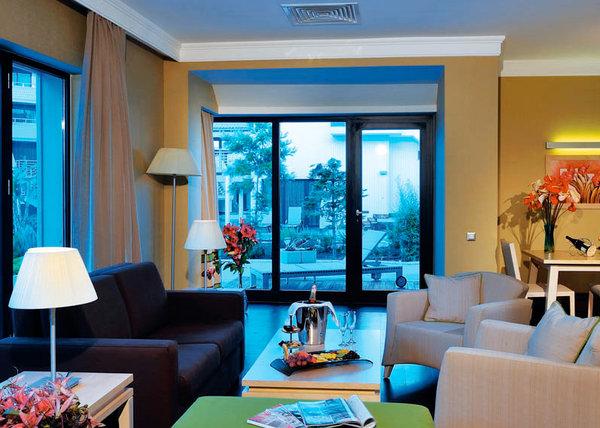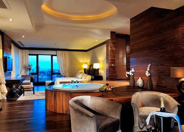Junior Royal Suite: 165 м2. Шикарный номер с панорамным видом на море, расположен в главном корпусе; состоит из гостиной, 2 спален, 2 ванных комнат с джакузи, террасы (18 м2).