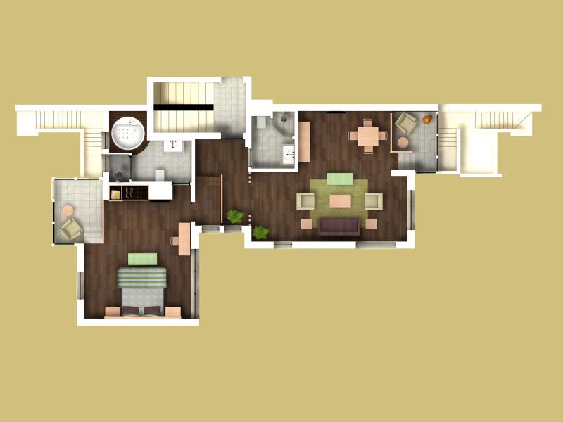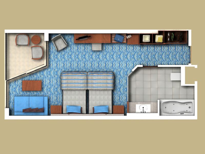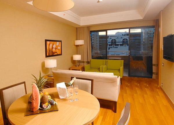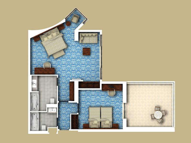 Terrace Triplex Family Room: 115 м2. Трехуровневый номер, расположен на 4 этаже корпуса Terrace Building и имеет выход к бассейну; состоит из гостиной на 1 этаже, 2 спален на 2-ом и одной спальни — на 3 этаже (все спальни имеют ванные комнаты, телефоны и телевизоры), террасы. Максимальное размещение — 6 человек.