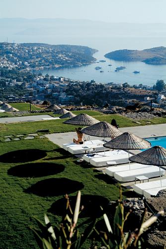 Широкое использование белого цвета, столь эффектно сочетающегося с лазурным турецким небом, изумрудными газонами и открывающимися пейзажами залива, призвано ассоциироваться с чистотой и прозрачностью и служит своеобразным фоном, который органично подыгрывает индивидуальному характеру каждого гостя. А четкие геометрические линии и целостная концепция дизайна выступают резким контрастом по сравнению с окружающими пейзажами: перекатывающимися холмами, пышной растительностью и разбросанными внизу домиками. Здесь в окружении белоснежной чистоты каждый прочувствует атмосферу уединения, внутренней свободы и умиротворения, где вы можете провести время в хорошей компании или, напротив, забыться и отдохнуть от забот окружающего мира. К услугам гостей: ресторан, собственный галечный пляж, 8 открытых бассейнов с подогревом, тренажерный зал, сауна и 4 массажных кабинета.