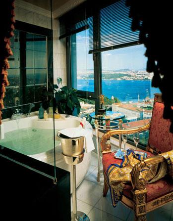 Bosphorus Suite: 65 м2. С видом на Босфор; состоят из спальни, гостиной с письменным столом и ванной комнаты с джакузи, ванной и отдельной душевой кабиной.
