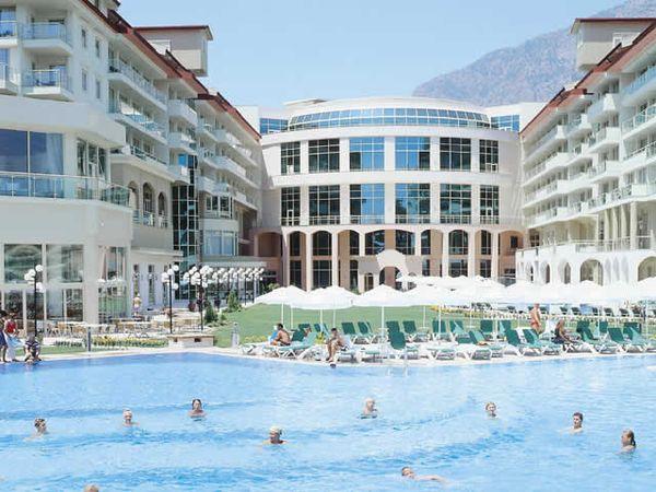 Отель расположен в Кемере, в 1 км от центра города и торговых кварталов. Современное пятиэтажное здание находится в непосредственной близости от пляжа, в окружении сосен и зеленых лужаек, на фоне гор Таурус. Гостей встречает просторное лобби-атриум, украшенное живыми пальмами. Территория отеля составляет 30 тысяч кв. м. Здесь есть все для разнообразного отдыха, включая мини-кинотеатр и амфитеатр, где проходят концерты и развлекательные шоу. В Kemer Resort Hotel любит останавливаться Таркан — звезда турецкой поп-музыки. В отеле есть 8 ресторанов и 8 баров, фитнес-центр, салон красоты, центр водных видов спорта, 4 бассейна, теннисные корты, бизнес-центр, Интернет-кафе, магазины, парковка для автомобилей.