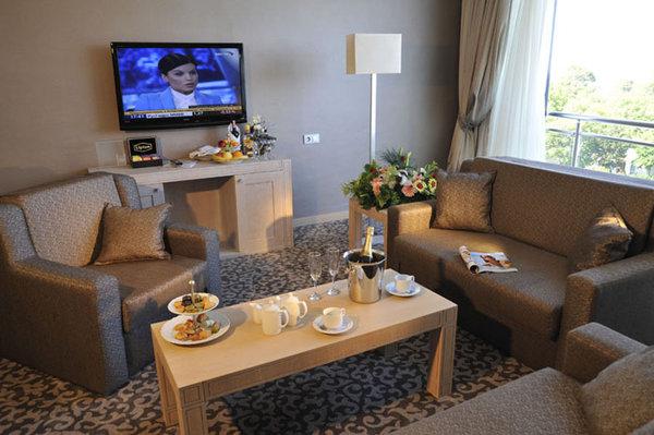 Junior Penthouse Suite: расположен на последних этажах, состоит из спальни, гостиной зоны, мини-кухни, 2 ванных комнат с джакузи. Дополнительно в номере — DVD player. Максимальное размещение — 2 человека.
