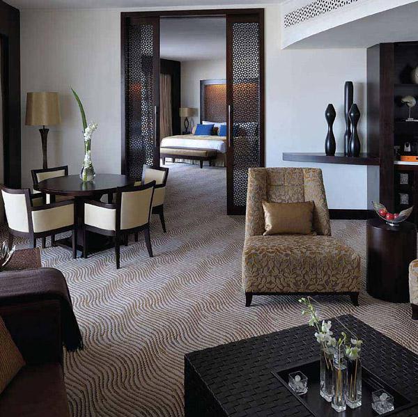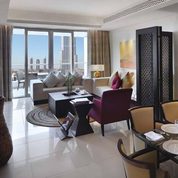 Junior Suite: 110 м2. Состоит из спальни, гостиной и обеденной зон, ванной комнаты, террасы с видом на башню или бульвар Burj Dubai и Старый город. Гостям номера предоставляются привилегии Executive Club.