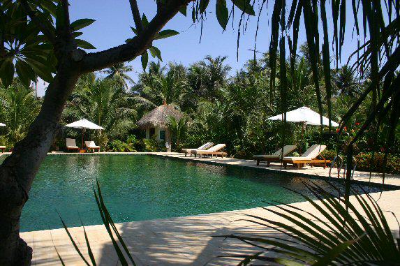 Beach Front Villa расположена у пляжа, состоит из спальни с кроватью king-size под пологом, ванной комнаты с окном, веранды.