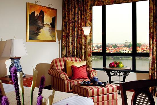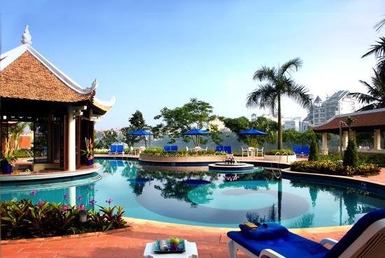 Sheraton Hanoi Hotel был открыт в марте 2004 года. Многоэтажное здание отеля расположено на живописном берегу озера West Lake среди благоустроенных садов. Во внутреннем дизайне отеля французский колониальный стиль удачно дополняется изысканным восточным колоритом. Внушительных размеров лобби украшено большим куполом с разноцветными витражами, прекрасно гармонирующими с великолепным мозаичным орнаментом пола. Просторные элегантно декорированные номера с высокими потолками и панорамными окнами предлагают прекрасные виды на озеро и городской горизонт. К услугам гостей превосходный спортивно-оздоровительный центр, включающий открытый бассейн, утопающий в зелени, освещаемый теннисный корт и тренажерный зал. Благодаря наличию многофункциональных залов является идеальным местом для проведения торжественных банкетов, свадебных церемоний, конференций и семинаров.