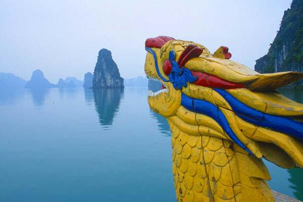 Бухта Халонг со своими более чем 3000 островами, выступающими из чистой изумрудной воды Тонкинского залива, является одним из природных чудес Вьетнама. Крошечные острова обрамлены бесчисленным множеством пляжей и гротов, созданных ветром и волнами. Халонг переводится как «там, где дракон спустился в море». Существует легенда, что острова Халонга были созданы Красным драконом, который жил в горах. Когда он вышел на берег, то своим хвостом выдолбил долины и лощины, а когда он погрузился в море, то места, выкопанные его хвостом, заполнились водой и остались лишь несколько видимых клочков земли. Помимо удивительной красоты, есть у этой бухты и своя легенда. Как утверждают местные жители, в здешних водах и поныне живет дракон - вьетнамская разновидность Лохнесского чудовища, которого изредка видят рыбаки. Чтобы убедиться в этом, здесь вам предложат отправиться на джонке на поиски чудовища или посетить многочисленные пещеры и гроты на островах, позагорать и искупаться в кристально чистых водах бухты и насладиться обедом даров моря прямо на борту судна. Можно отправиться на самый большой остров бухты - Катба, превращенный в национальный парк, и увидеть редких обезьян-франсуа, диких кабанов, оленей, а также более 20 видов птиц, включая ястребов и птиц-носорогов.